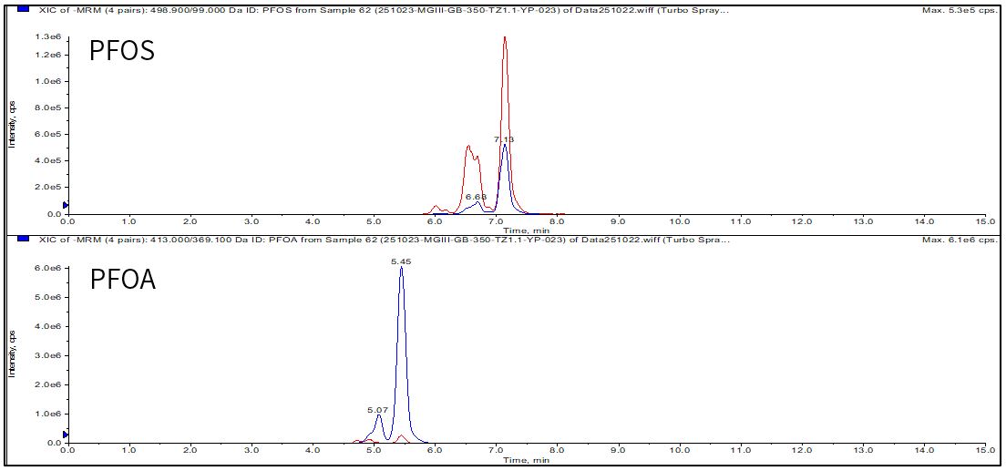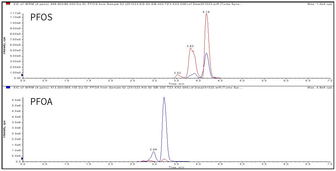 样品:PFOA:0.1 µg/L;PFOS:0.2 µg/L 。