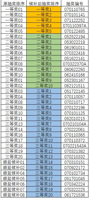 当由同一用户获得多种奖品时,以最高奖品等级记录,其余中奖编号往下顺延。