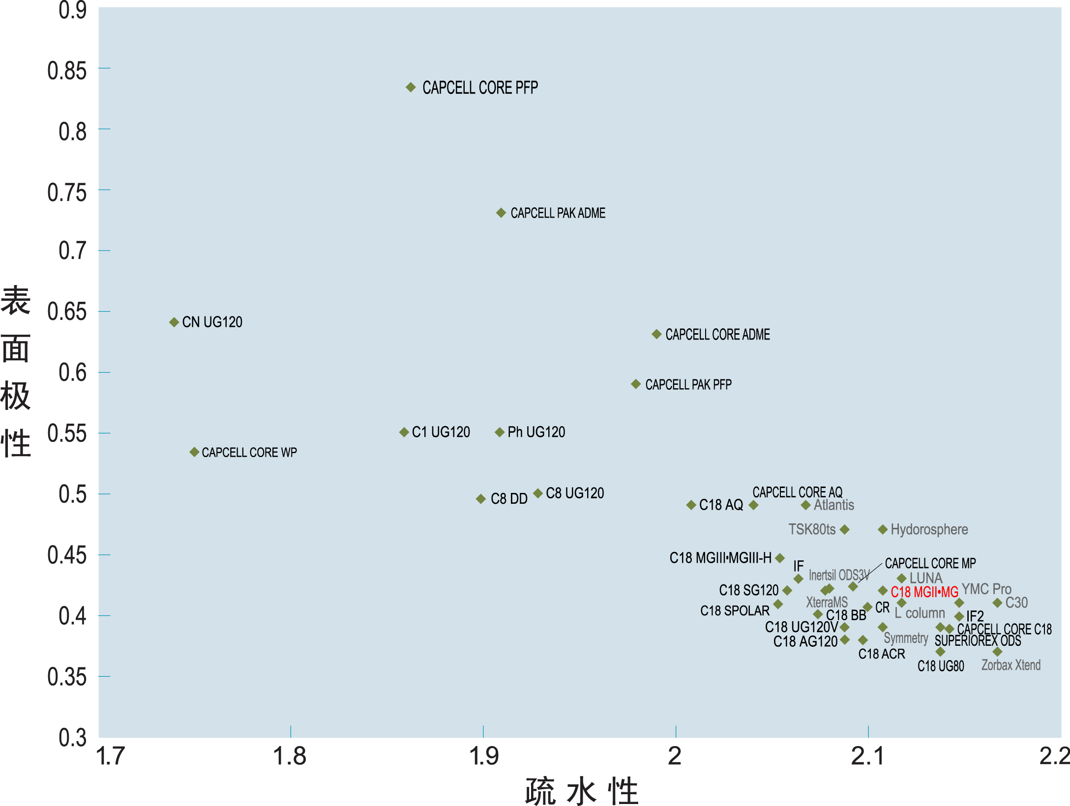 ※C1和CN填料由于官能基较短,与C8和Phenyl相比,耐久性有所下降。