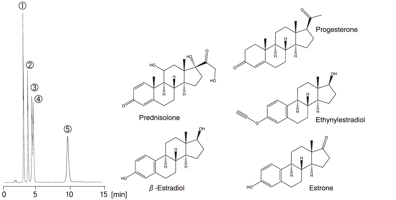 样 品:①孕酮 ②雌酚酮 ③β-雌二醇 ④炔雌醇 ⑤泼尼松龙