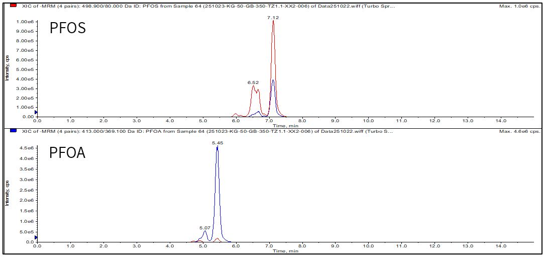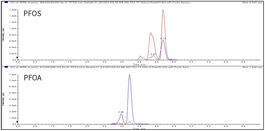 样品:PFOA:0.1 µg/L;PFOS:0.2 µg/L 。